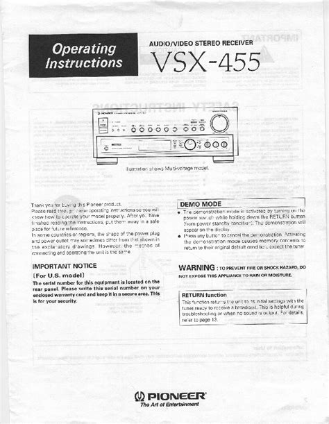 Read Online Pdf Manual Pioneer Vsx-455 User Guide Library Binding